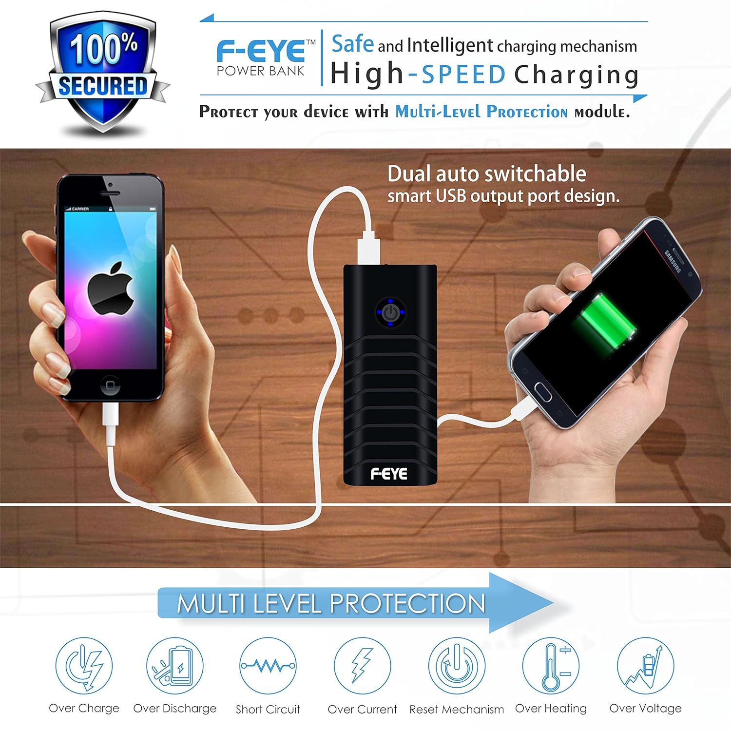 charging. (With F-EYE Power Bank during charging you will not face any over